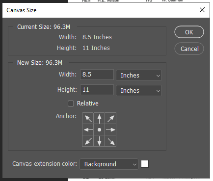 Most backgrounds have a texture in them, so using one solid color as a background (unless the original background was pure white) is not an optimal solution. - Consistency: If you use image settings on the first page of a multiple page document (e.g. Image, Adjustments, Levels or Exposure, Brightness, Contrast, etc.), write those settings down and apply them to each successive page to maintain a consistent look throughout the entire document.